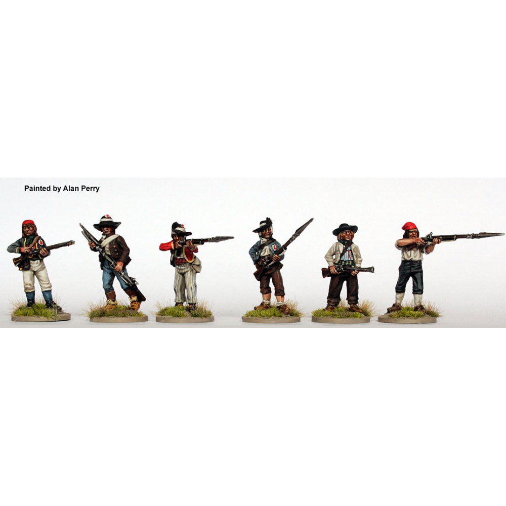Vendéen Revolutionaries, firing line and skirmishing. Pack of metal figures, by Perry Miniatures, 28mm. The figures are supplied unassembled and unpainted; paint and glue are not included.