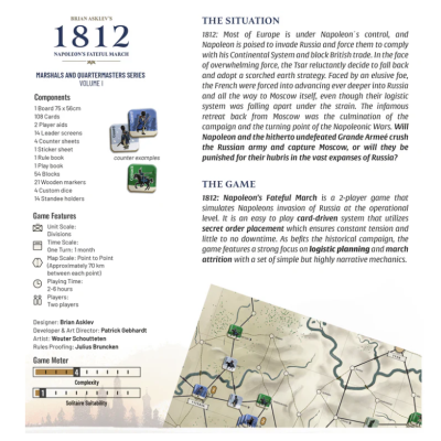 1812: The Fateful March is a 2-player game that simulates Napoleons invasion of Russia at the operational level.