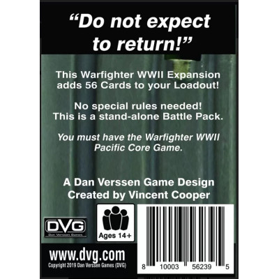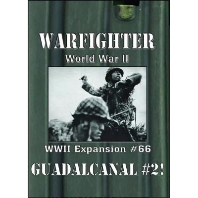 Warfighter: WWII Expansion #66 – Guadalcanal #2 adds 56 cards to your Warfighter WWII Missions, including new Hostiles, Soldiers, Locations, Missions, Objectives, and Skills.