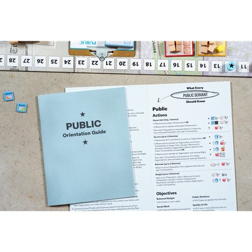 Cross Bronx Expressway models this rich history as a competitive economic city builder with collective loss conditions. Three playable factions—Public, Private, and Community—attempt to save the city from the brink of bankruptcy and protect the Bronx's vulnerable population throughout this tumultuous period, while also working to achieve their own conflicting objectives. The game progresses using a shared event deck, divided into decades. Each decade features a semi-random series of historical cards whose effects will always occur but can be manipulated by the players. The factions perform actions around these events in order to mitigate their effects, while hoping to tip the balance in their favor. Infrastructure will be built and sometimes demolished, coalitions formed and abandoned, populations housed and displaced, and the vulnerable encouraged and discarded, while each faction struggles to stay out of debt and achieve their own objectives. At the end of each decade, census numbers are tallied to determine which factions have achieved their objectives and at what cost. If they manage to keep the city afloat, each decade provides the players with new opportunities to transform the South Bronx according to their own vision, but if too many vulnerable people are lost or if the city goes bankrupt, everyone will lose. Can you cooperate better than the historical actors did and pull the South Bronx back from the brink of disaster?