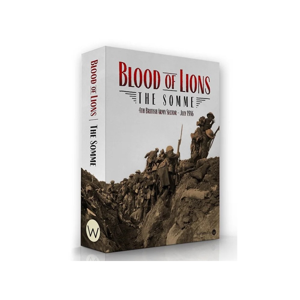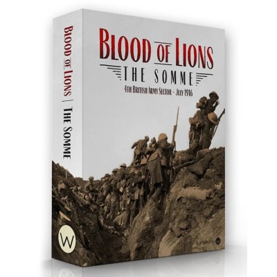 REF: WPUB111Blood of Lions is a WWI solitaire wargame depicting the actions of the British 4th Army during the month of July at the Battle of the Somme. The game uses a combination of dice, cards, generated Command and Leadership points as well as some push your luck mechanics in order to advance on objectives and obtain victory points.
