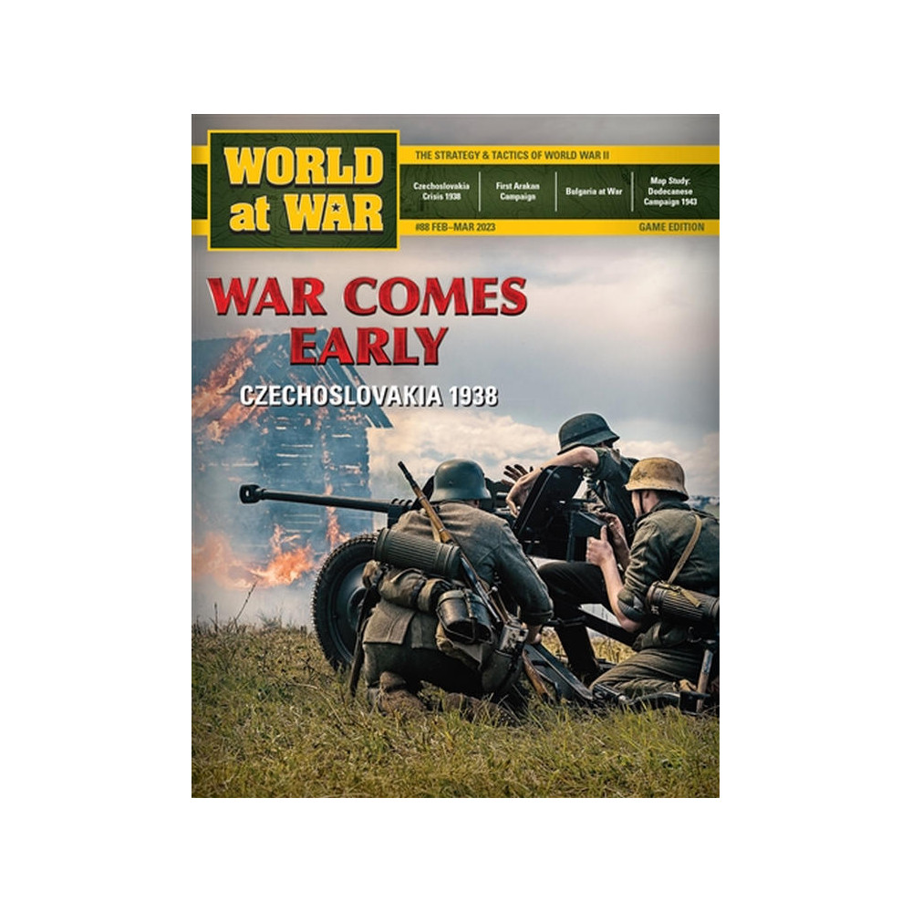 REF: WAW88War Comes Early (WCE) is a low to intermediate complexity two-player alternative history wargame. It investigates the parameters of the six weeks of the conflict that would have resulted had the Czechoslovakians refused to accept the Munich Agreement. Had they been willing to fight the Soviets were pledged to come to their aid as fully and directly as possible. That intervention would have immediately escalated the crisis beyond a Czech German one and into the realm of a major war. The game is restricted to covering the hypothetical war’s first six weeks in October and the first half of November. That is because none of the participants had the logistical wherewithal to to go on fighting longer than that without a pause to resupply.