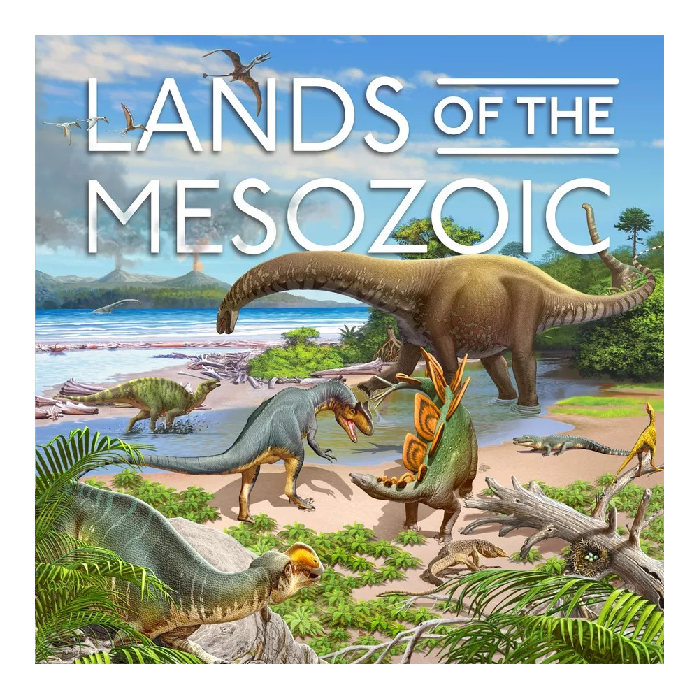 REF: WPNG001The Mesozoic era spans between 252 and 66 million years ago and is subdivided into the Triassic, Jurassic, and Cretaceous periods. This is the time that saw dinosaurs first appear, dominate the world, and go extinct (except for some groups of avian dinosaurs, i.e., birds). However, dinosaurs weren’t the only animals of the Mesozoic; they shared their habitats with amphibians, reptiles, mammals, and others. In Lands of the Mesozoic, 1 to 4 players will create and manage their own Mesozoic ecosystems using 3 main types of cards that symbolize the different levels of the food chain. The game comes with over 120 individual cards