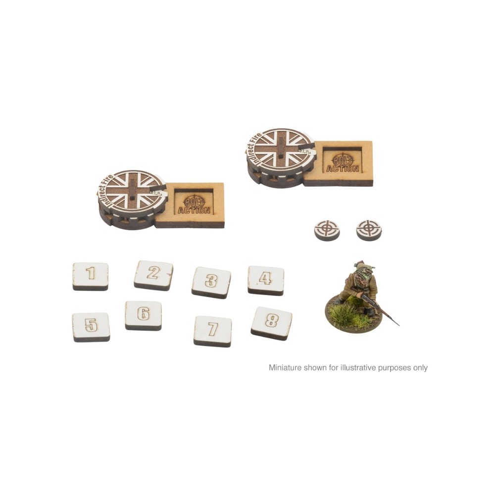 Con el fuego indirecto más frecuente que nunca en Bolt Action, querrás saber qué armas están apuntando al enemigo. Estos marcadores te aseguran saber quién dispara a quién y qué objetivo deben alcanzar en el siguiente turno, eliminando confusiones y permitiéndote marcar tus objetivos con precisión.
