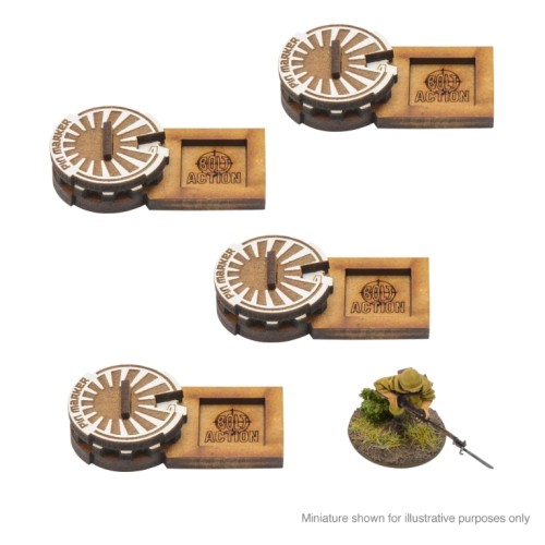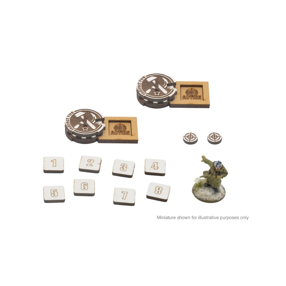 Con el fuego indirecto más frecuente que nunca en las partidas de Bolt Action, querrás saber qué armas están apuntando al enemigo. Estos marcadores te aseguran saber quién dispara a quién y qué objetivo deben alcanzar en el siguiente turno, eliminando confusiones y permitiéndote marcar tus objetivos con precisión.