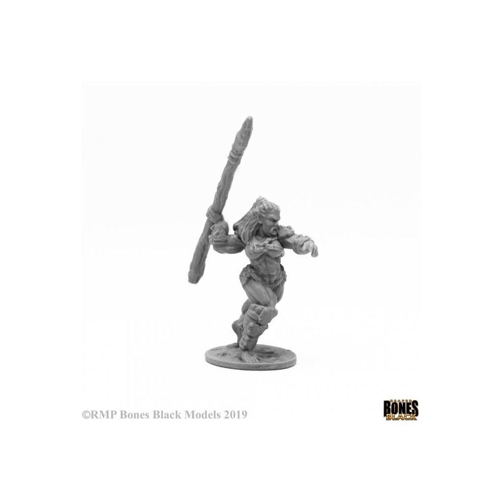 Jade Fire Spearman. Figuras de resina plástica sin pintar de la gama BONES de Reaper Miniaturas, aptas para coleccionismo y juegos de rol. Perfectas para Dungeons and Dragons, Pathfinder o Warhammer JdR.