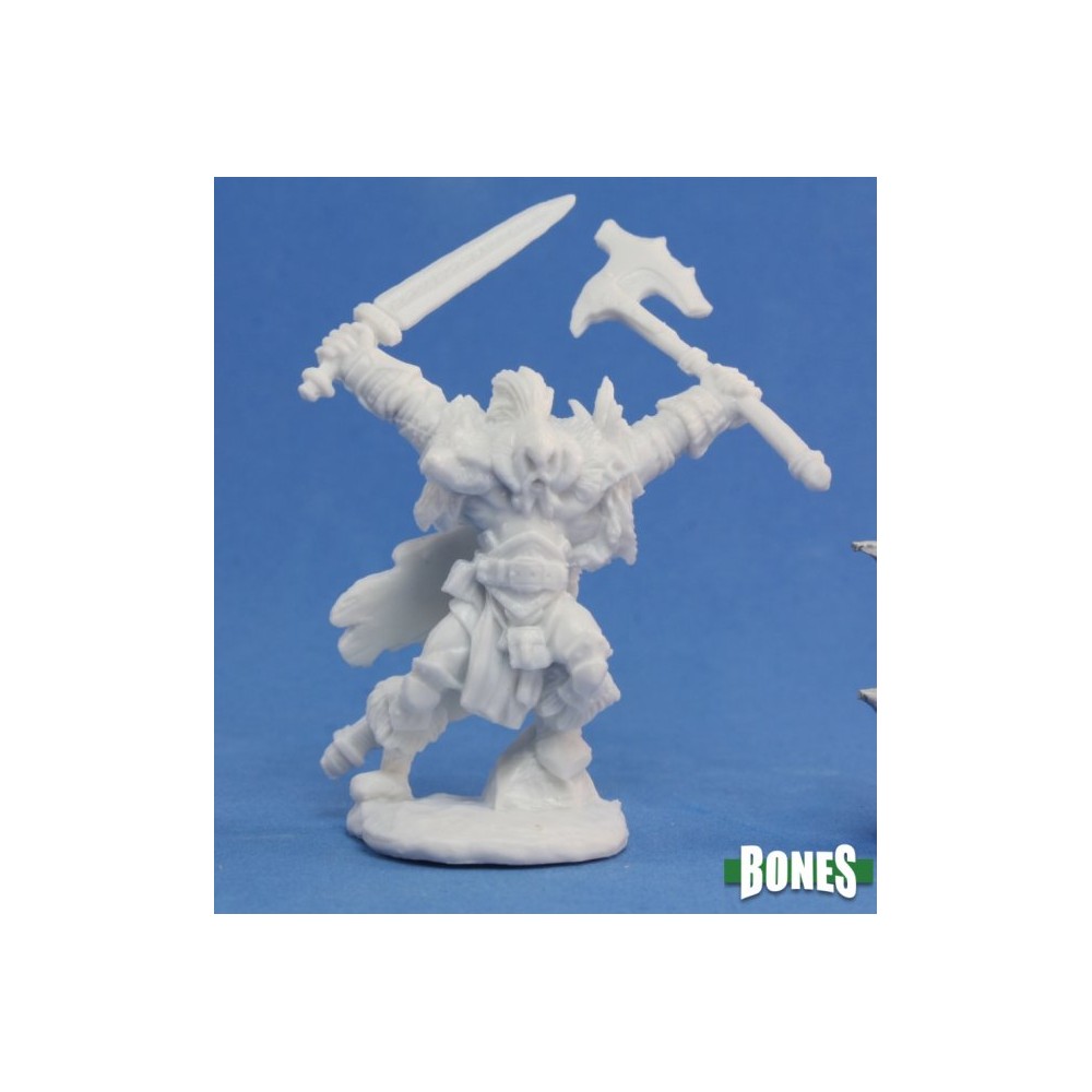 Kord the Destroyer. Figuras de resina plástica sin pintar de la gama BONES de Reaper Miniaturas, aptas para coleccionismo y juegos de rol. Perfectas para Dungeons and Dragons, Pathfinder o Warhammer JdR.