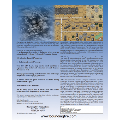 Corregidor: The Rock analiza detalladamente las duras batallas por la isla de Corregidor, ubicada en la entrada de la bahía de Manila, en Filipinas, durante la invasión japonesa de 1942 y la posterior recuperación de la isla por parte de EE. UU. en 1945.