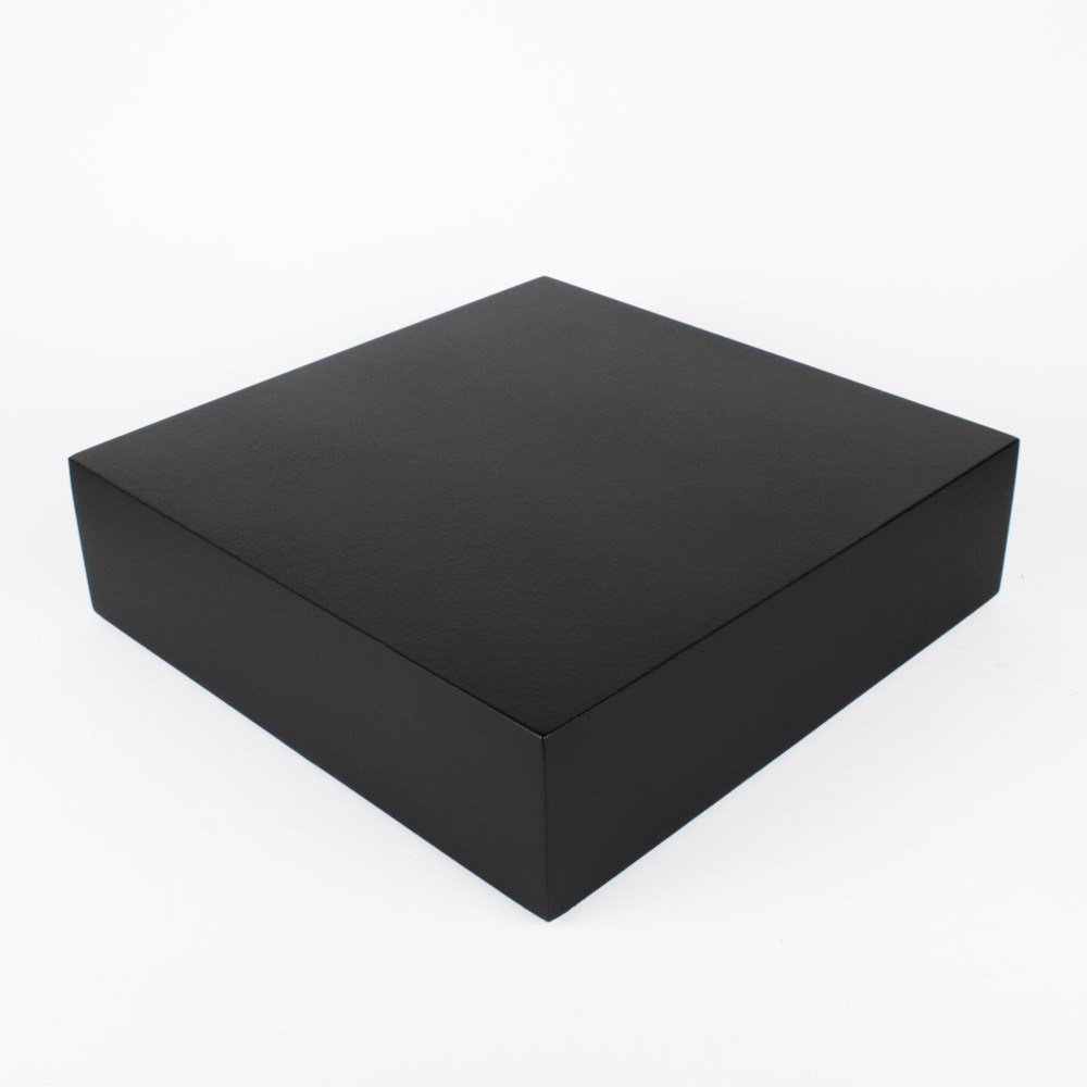 REF: M15x15x4Soporte de madera MDF de 15 x15 cms, altura 4 cm, acabado en negro mate con un recubrimiento ultrarresistente.