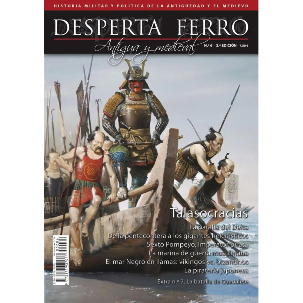 Bajo el título Talasocracias soplamos la vela de la tarta con la que cumplimos un año. Sopla también el viento en la vela del navío que nos llevará a recorrer en este número el mundo de la guerra en el mar bajo distintos prismas. Desde la que, fue quizás, la primera batalla naval documentada entre Egipto y los Pueblos del Mar hasta el desarrollo de las naves de guerra griegas que surcaron el Mediterráneo vertebrando el devenir histórico del Mundo Antiguo. Analizaremos el dominio del mar como recurso en la pugna del poder, como Sexto Pompeyo, y como necesidad estratégica, en el conflicto entre Bizancio y el pujante islam. En el otoño de la Edad Media el eje histórico pasará al Atlántico y la herencia de la revolución naval vikinga facilitará que se arriben cada vez puertos más lejanos como los del Pacífico, dominados por la piratería japonesa.