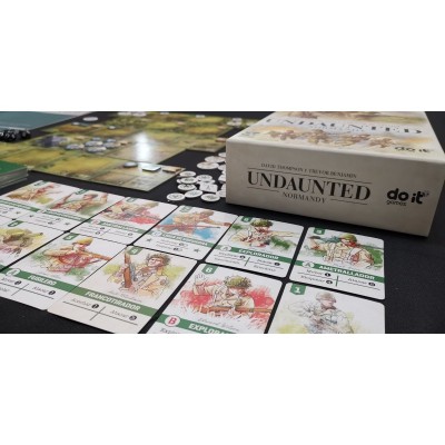 REF: UNDN-DOITUndaunted: Normandy es un juego de construcción de mazos que te coloca a ti y a tu oponente al mando de las fuerzas estadounidenses o alemanas, luchando en una serie de misiones críticas para el resultado de la Segunda Guerra Mundial. Usa tus cartas para tomar la iniciativa, reforzar tus fuerzas o controlar tus tropas en el campo de batalla. Un liderazgo fuerte puede cambiar el rumbo de la batalla a tu favor, pero las decisiones imprudentes pueden resultar catastróficas, ya que cada baja que sufres elimina una carta de tu mazo. Hágase cargo en medio del caos de la batalla, manténgase firme frente a la oposición y permanezca impávido.