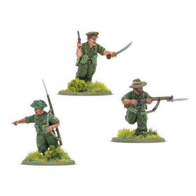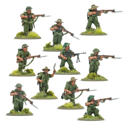Esta caja contiene 30 miniaturas de infantería con uniformes de jungla, lo que te permite crear una gran variedad de miniaturas de infantería Gurkha y equipos de armas para tu ejército indio. Cada plancha contiene una amplia gama de armas, incluyendo fusiles Lee-Enfield, PIAT, morteros ligeros y lanzallamas, además de los legendarios cuchillos kukri de los Gurkhas.