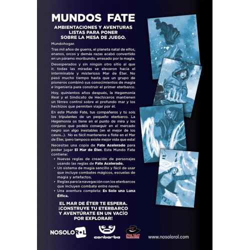 En este Mundo Fate, tus compañeros y tú sois los tripulantes de un pequeño eterbarco. La Hegemonía os tiene en el punto de mira y los conjuros que podéis conseguir en el mercado negro son algo inestables (en el mejor de los casos...). No es fácil mantenerse a flote en el Mar de Éter, ¡pero tampoco existe mejor vida que esta!