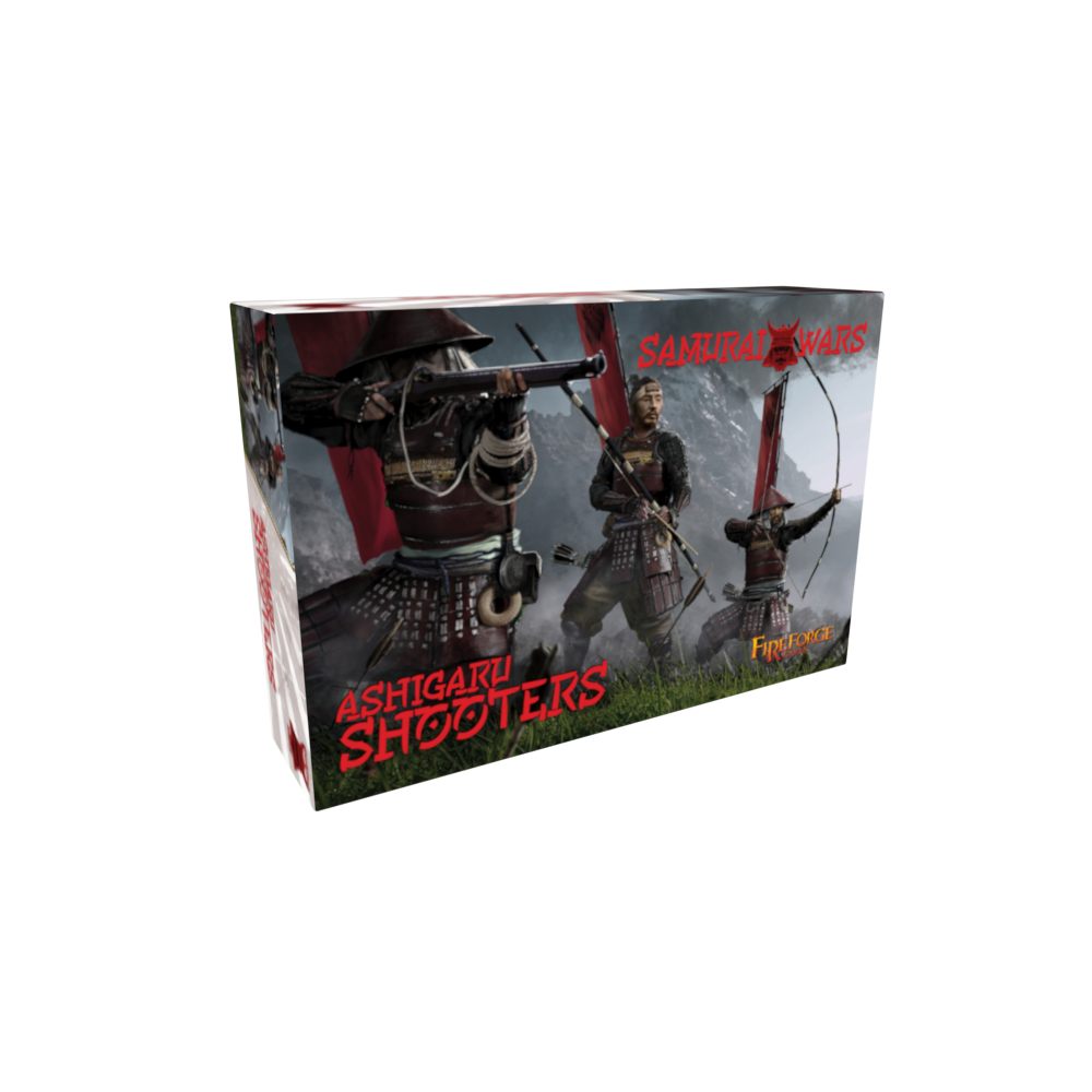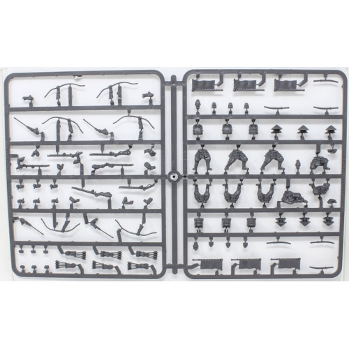 Esta caja te permite construir 24 Ashigaru Shooters de plástico armados con Yumi o Teppo.