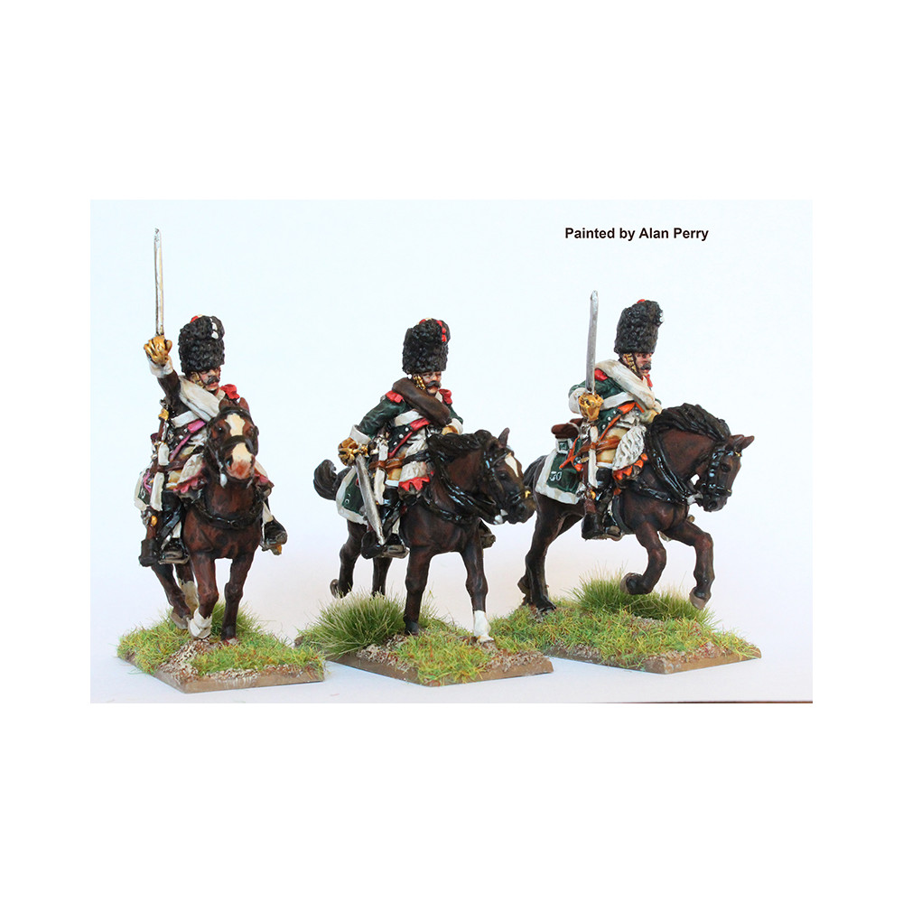 FN 201 Hussars Elite company in campaign dress and colpacks (separate pelisses) shouldered swords galloping 1805-15