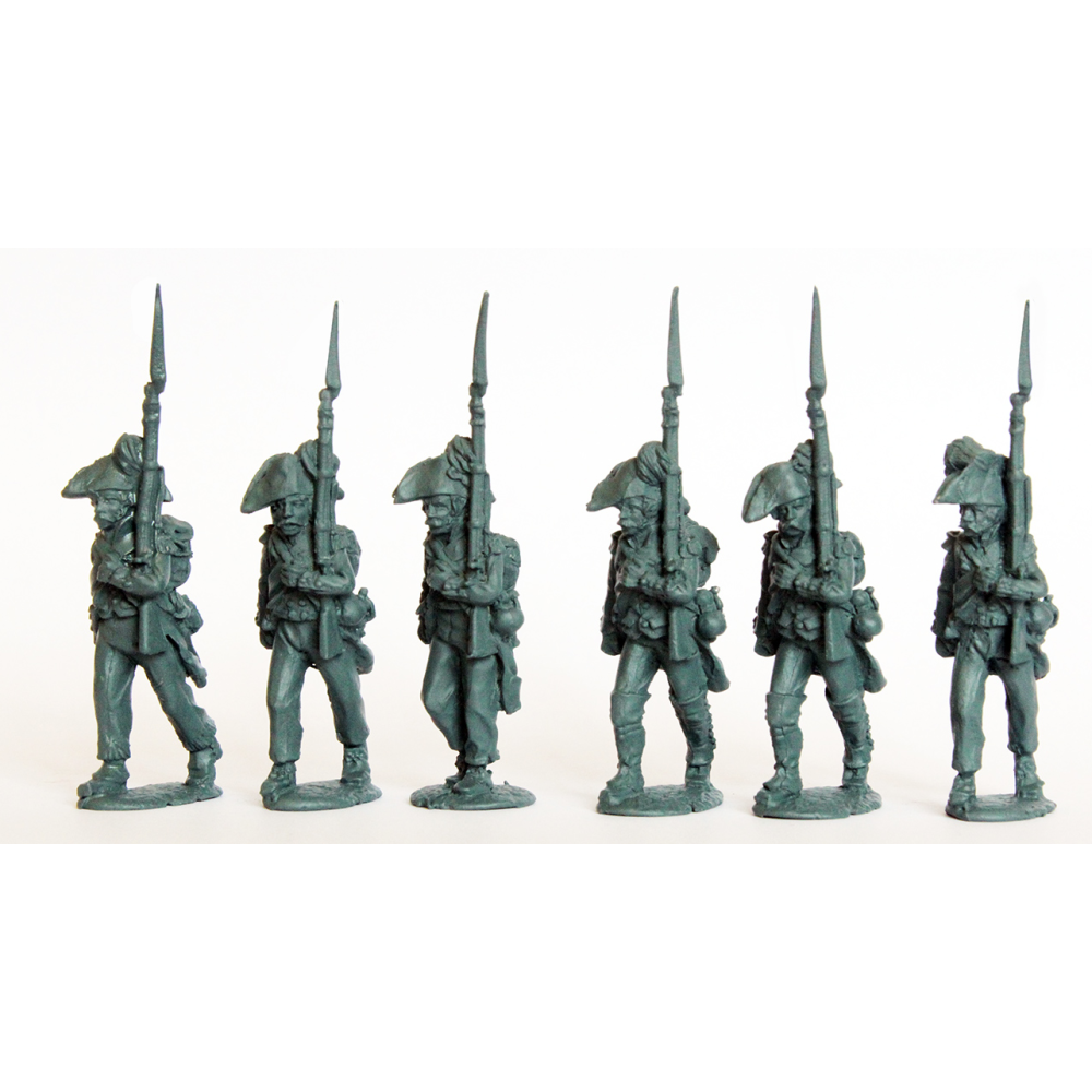 Ejército Francés Revolucionario 1789-1799, Fusileros en marcha de ataque con bicornio. Pack de figuras en metal, de Perry Miniatures, 28mm. Las...