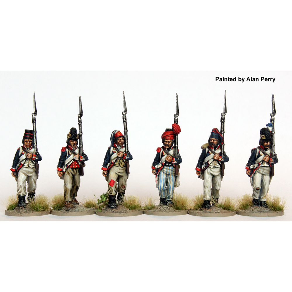 Ejército Francés Revolucionario 1789-1799, Infanteria, en marcha de ataque, con cubrecabezas variados. Pack de figuras en metal, de Perry Miniatures, 28mm. Las figuras se suministran sin montar ni pintar, pintura y pegamento no incluidos