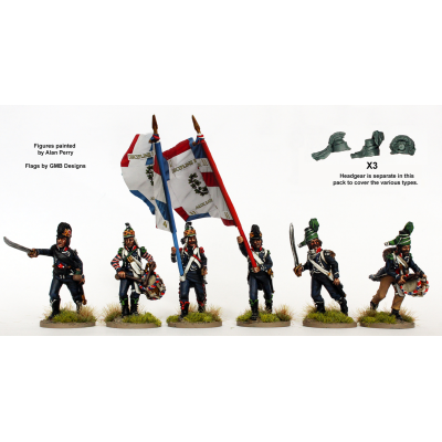 Ejército Francés Revolucionario 1789-1799, Grupo de mando de infanteria avanzando. Pack de figuras en metal, de Perry Miniatures, 28mm. Las figuras se suministran sin montar ni pintar, pintura y pegamento no incluidos. Banderas no incluidas