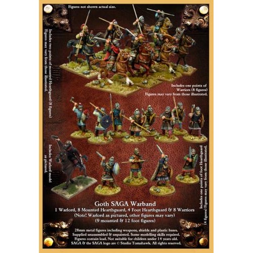 Banda de Hunos para SAGA Aetius & Artorius. Contiene 25 figuras hunos a caballo; un Warlord, 8 guardias y 16 guerreros.