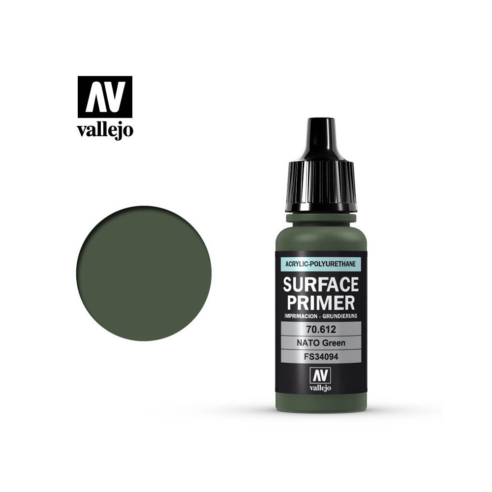 REF: 70612Imprimaciones acrílicas mates especialmente formuladas para aerografía. La imprimación es la primera capa de color que se aplica sobre la maqueta con la finalidad de preparar la superficie para los procesos de pintura posteriores. Vallejo Surface Primer no oculta los detalles de la maqueta y se puede aplicar sobre diversas superficies como resina, pvc, latón, metal blanco o madera. Las imprimaciones se aplican por capas de forma sucesiva, y secan rápidamente formando una película homogénea de extraordinaria dureza y resistencia transcurridas unas horas tras su aplicación. Se pueden usar directamente o diluido con nuestro Airbrush Thinner o Flow Improver.