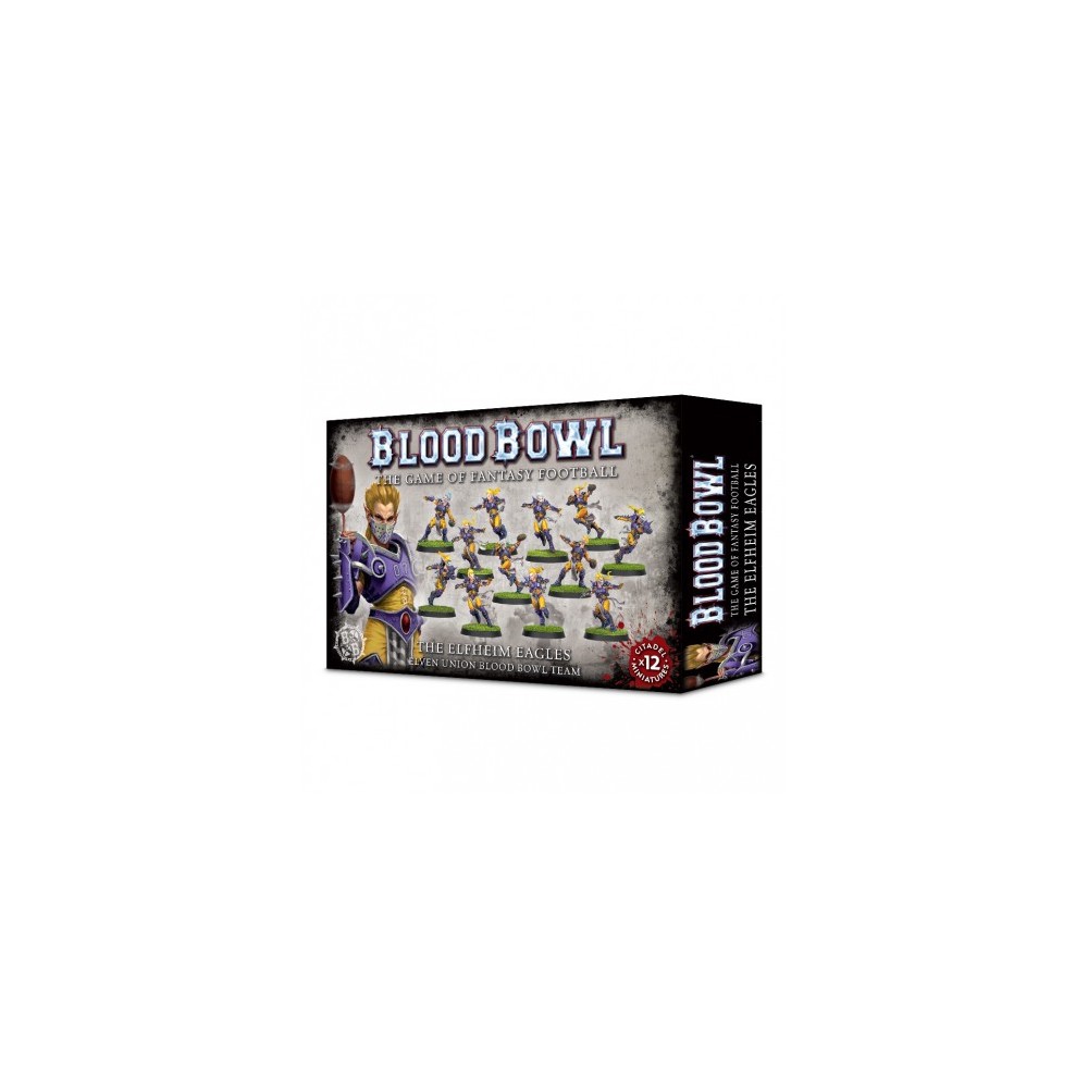Este kit de plástico multicomponente contiene las piezas necesarias para montar los Elfheim Eagles, un equipo de Blood Bowl de Elven Union. El equipo consiste en 6 Linemen (4 de los cuales son mujeres), 2 Blitzers, 2 Throwers y 2 Catchers, todos ellos hermosos y de pómulos impresionantes, como cabríua esperar de un equipo Elven. Las cabezas y hombreras son intercambiables entre las miniaturas, para que puedas hacer único a tu equipo.