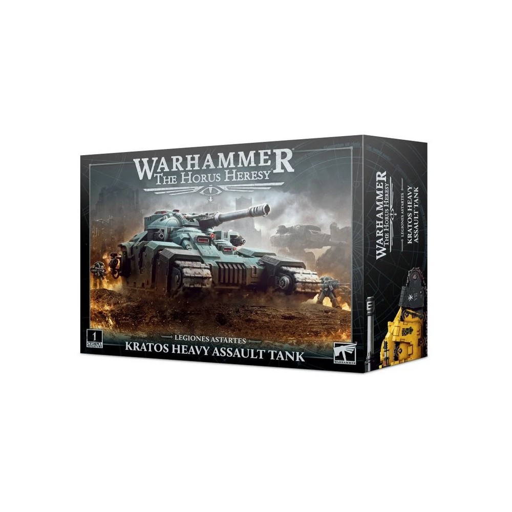 El Kratos Heavy Assault Tank está basado en un modelo de los Antiguos Terranos que se utilizó durante la Unificación de la Vieja Tierra, rediseñado tras el tratado del Emperador con los Señores de Marte para servir como punta de lanza de la Gran Cruzada, un rompelíneas y un aniquilador de enemigos. Este tanque de batalla es casi inmune al fuego enemigo, y su avance constante e inexorable proporciona un núcleo indomable a cualquier asalto de las Legiones Astartes, reforzado por un diluvio de fuego de una potencia abrumadora.