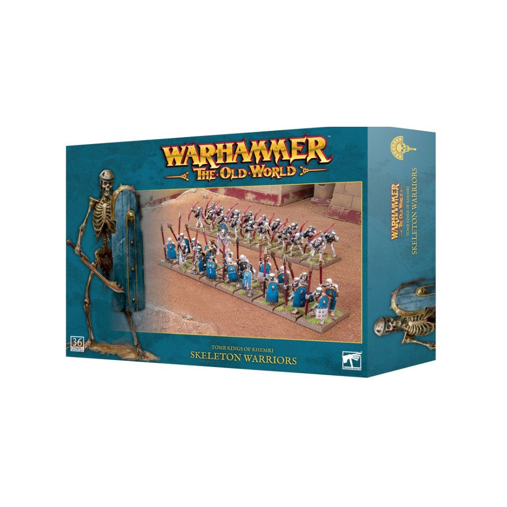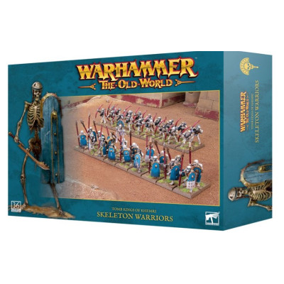 Con este kit multicomponente de plástico podrás montar 36 Skeleton Warriors, despertados para servir a los Reyes Funerarios de Khemri. Cada uno de estos soldados no muertos lleva un escudo alto de Nehekhara junto con una lanza o un arma de mano; alternativamente, puedes montarlos como Skeleton Archers armados con warbows. Este kit también incluye todas las mejoras de mando que necesitas; tanto si eliges desplegar a tus Skeleton Warriors en pequeños grupos o como una gran unidad, podrás montar músicos, campeones y portaestandartes con una selección de emblemas.
