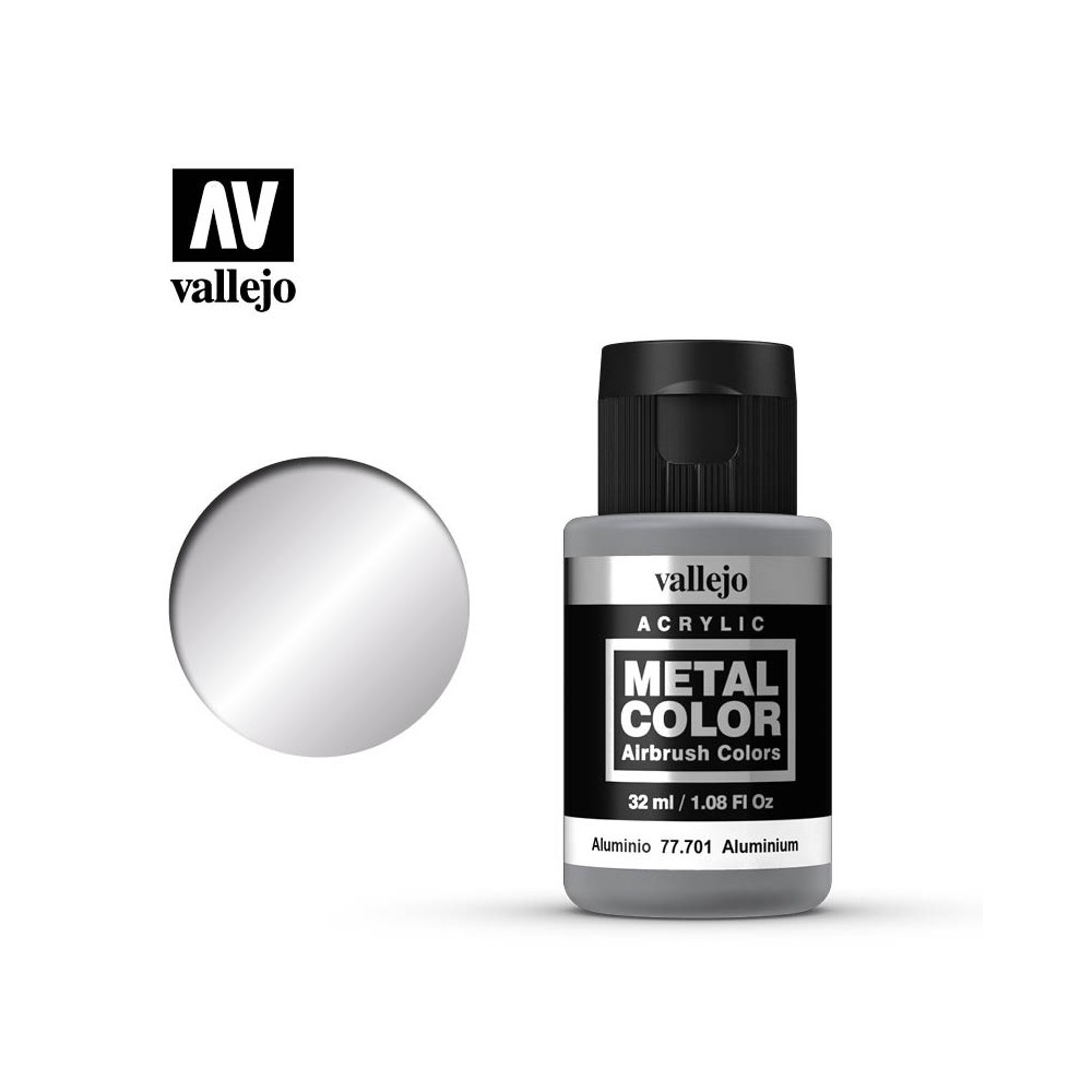REF: 77701Metal Color es una gama de colores metálicos acrílicos, que utiliza pigmentos de aluminio en su producción. De excepcional brillo y extraordinario poder de reflexión, permite al modelista realizar toda la gama de técnicas de pintura sin necesidad de recurrir a esmaltes y lacas. Se puede aplicar directamente sobre la maqueta mediante aerógrafo o diluir con nuestro Airbrush Thinner o Flow Improver. Metal Color seca muy rápidamente, manteniendo los más mínimos detalles presentes en la maqueta y formando una capa homogénea y autonivelante de extraordinaria resistencia a las pocas horas de su aplicación. Metal Color se puede teñir directamente en el vaso del aerógrafo utilizando colores de las gamas Model Air o Game Air. También se puede aplicar con pincel.