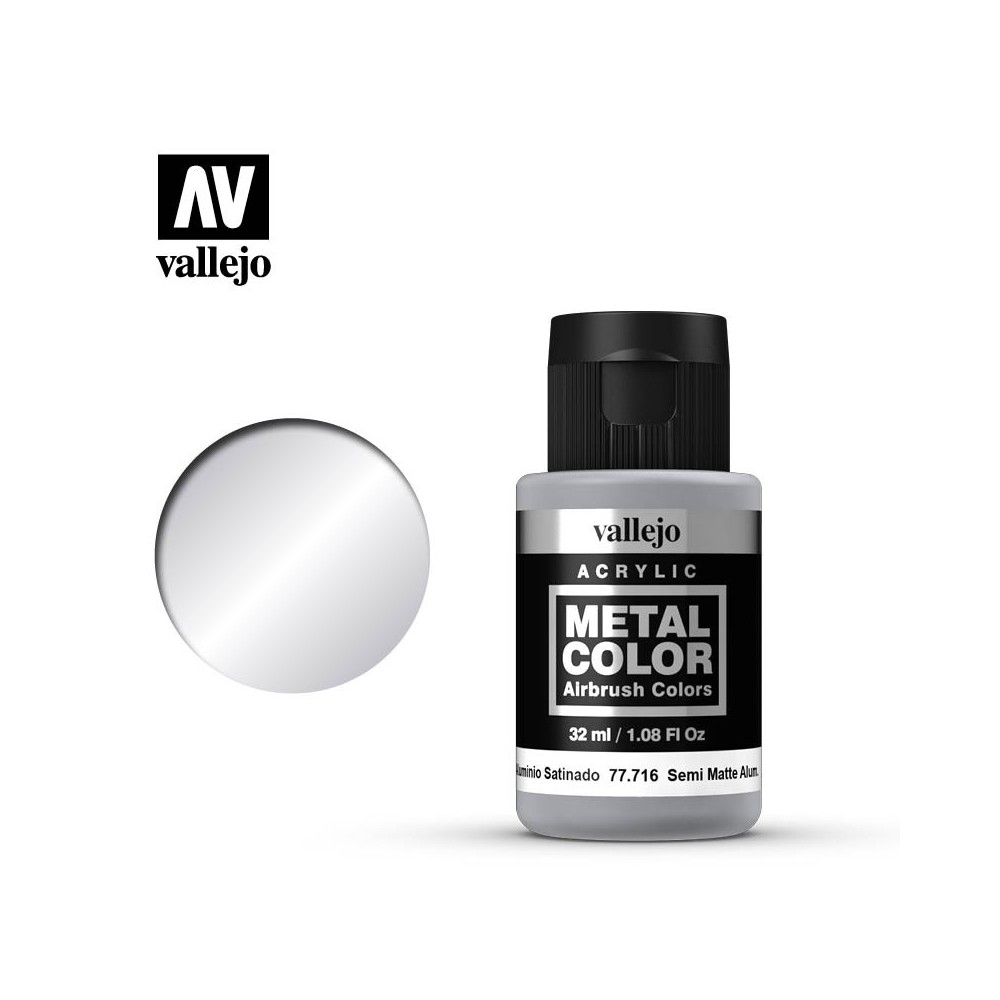 Metal Color es una gama de colores metálicos acrílicos, que utiliza pigmentos de aluminio en su producción. De excepcional brillo y extraordinario poder de reflexión, permite al modelista realizar toda la gama de técnicas de pintura sin necesidad de recurrir a esmaltes y lacas. Se puede aplicar directamente sobre la maqueta mediante aerógrafo o diluir con nuestro Airbrush Thinner o Flow Improver. Metal Color seca muy rápidamente, manteniendo los más mínimos detalles presentes en la maqueta y formando una capa homogénea y autonivelante de extraordinaria resistencia a las pocas horas de su aplicación. Metal Color se puede teñir directamente en el vaso del aerógrafo utilizando colores de las gamas Model Air o Game Air. También se puede aplicar con pincel.