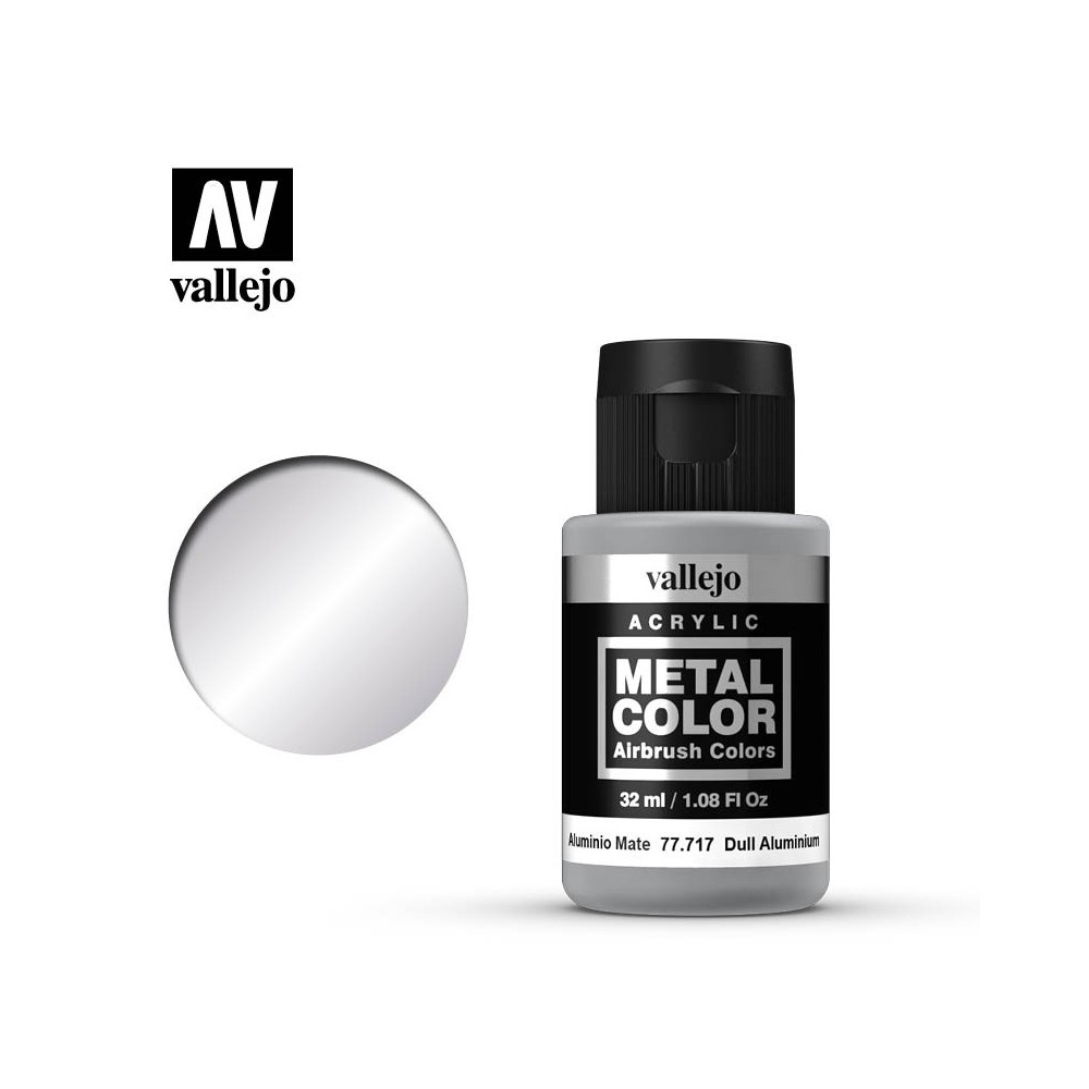 REF: 77717Metal Color es una gama de colores metálicos acrílicos, que utiliza pigmentos de aluminio en su producción. De excepcional brillo y extraordinario poder de reflexión, permite al modelista realizar toda la gama de técnicas de pintura sin necesidad de recurrir a esmaltes y lacas. Se puede aplicar directamente sobre la maqueta mediante aerógrafo o diluir con nuestro Airbrush Thinner o Flow Improver. Metal Color seca muy rápidamente, manteniendo los más mínimos detalles presentes en la maqueta y formando una capa homogénea y autonivelante de extraordinaria resistencia a las pocas horas de su aplicación. Metal Color se puede teñir directamente en el vaso del aerógrafo utilizando colores de las gamas Model Air o Game Air. También se puede aplicar con pincel.