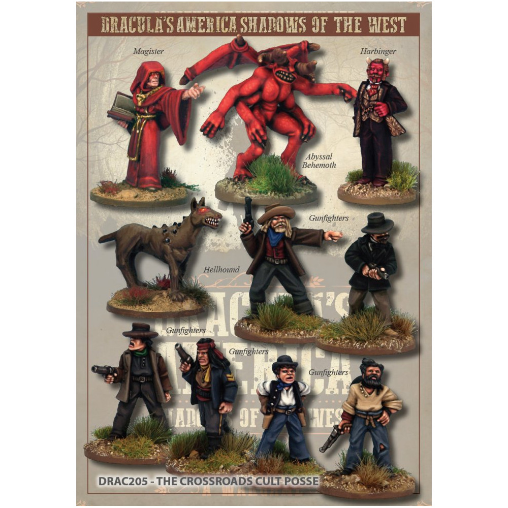 Todas las miniaturas son en 28mm, las miniaturas están disponibles tambien en blisters de La América de Drácula y la gama del Salvaje Oeste de Artizan Designs. Figuras en metal, se suministran sin pintar, pueden requerir montaje.