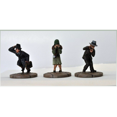 Civiles Aterrados ideales para representar civiles en pleno tiroteo!! Son de 28mm en metal y requieren pintado. Ni una calle...