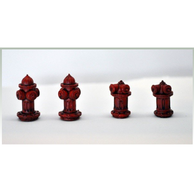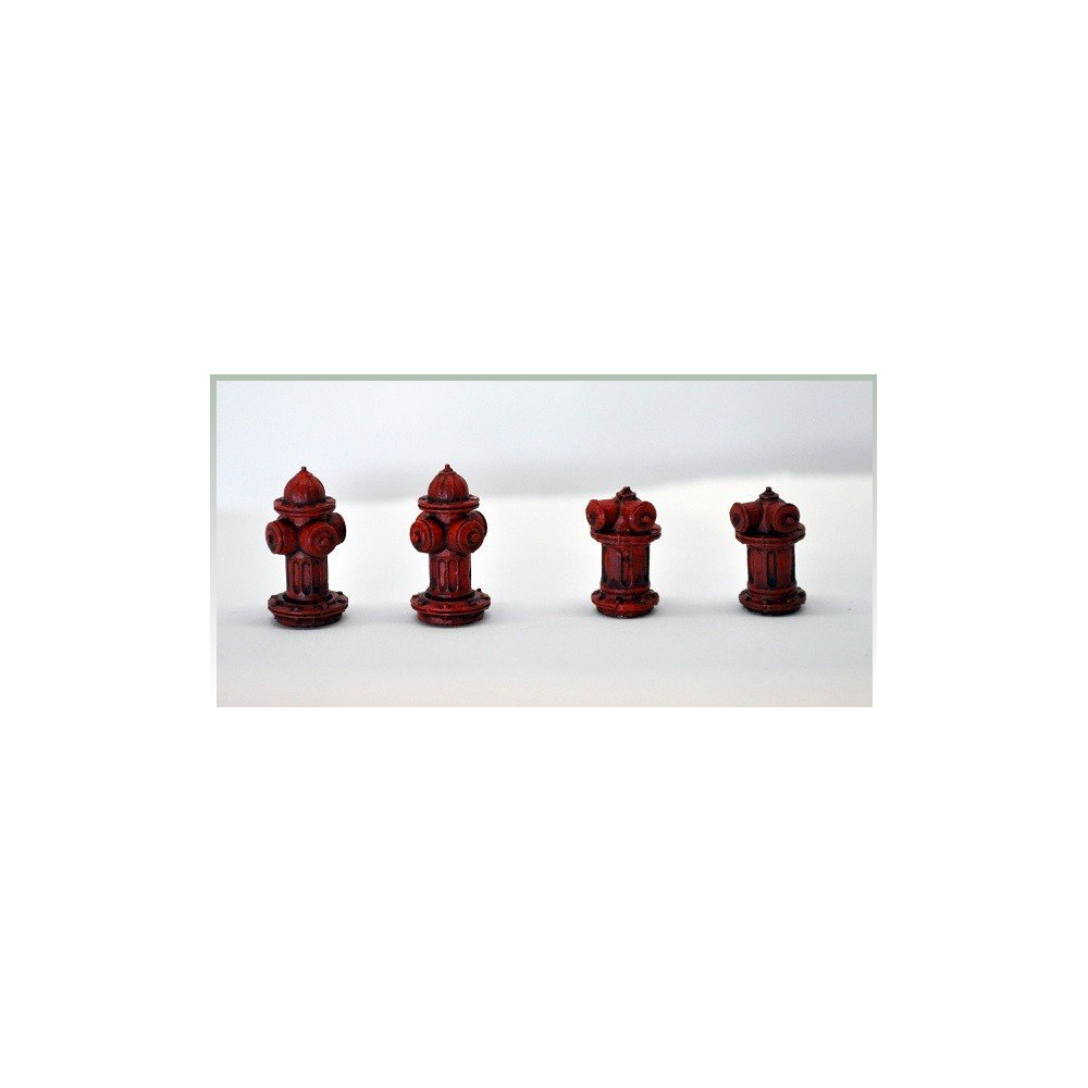 4 bocas de incendio metálicas a escala 28 mm. Sin pintar.