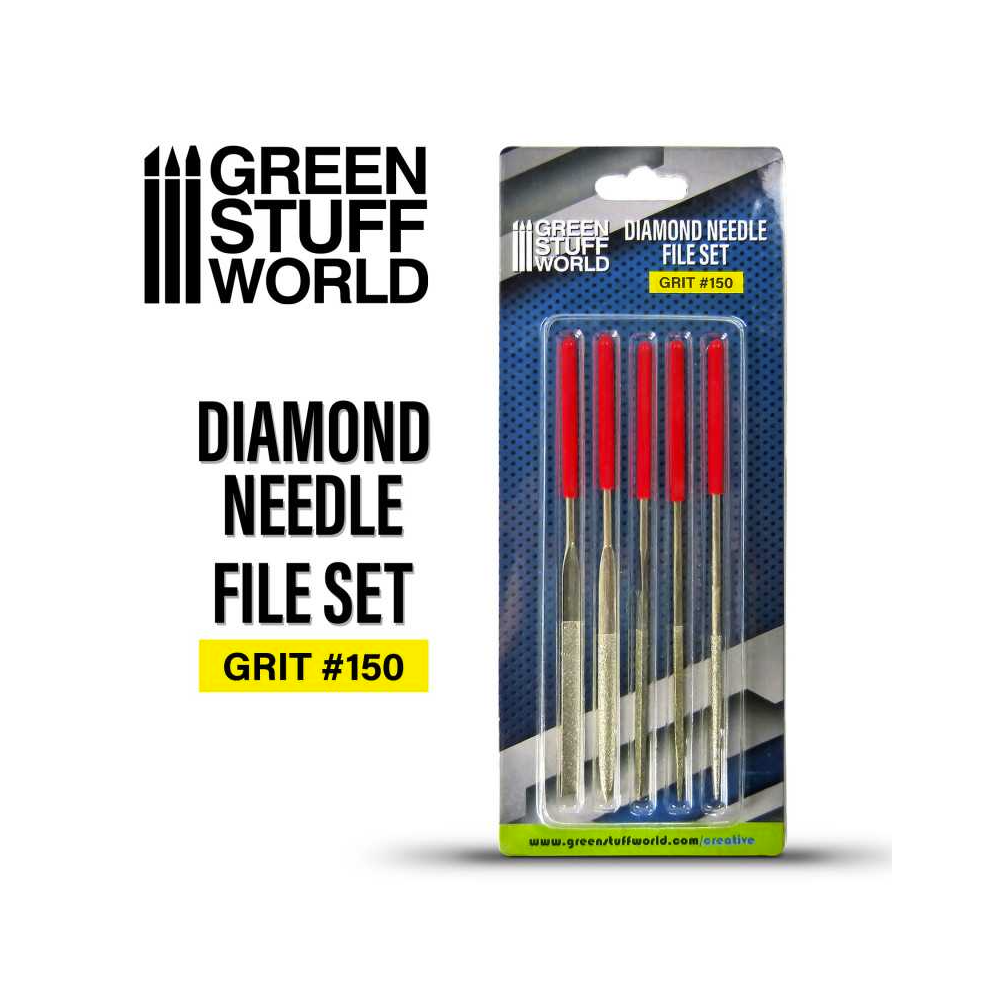Este pack contiene 5 limas diamantadas de formas diferentes: redonda, triangular, plana cuadrada y medio-circulo.
