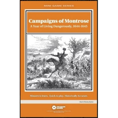 REF: DG1729Campaigns of Montrose: A Year of Living Dangerously, 1644-1645. Este es un juego para dos jugadores. Representa a James Graham, el marqués de Montrose, y su legendaria serie de victorias sobre el gobierno escocés del Covenanter durante la Primera Guerra Civil Inglesa (1642-1646), que más tarde terminaría en una aplastante derrota. El jugador realista debe reclutar un ejército de las Tierras Altas y replicar las victorias de Montrose o marchar hacia Inglaterra. El jugador de Covenanter debe superar las luchas internas entre facciones para derrotar a Montrose. Ambos bandos deben manejar la tendencia de las unidades reclutadas a disolverse después de cada derrota o victoria.