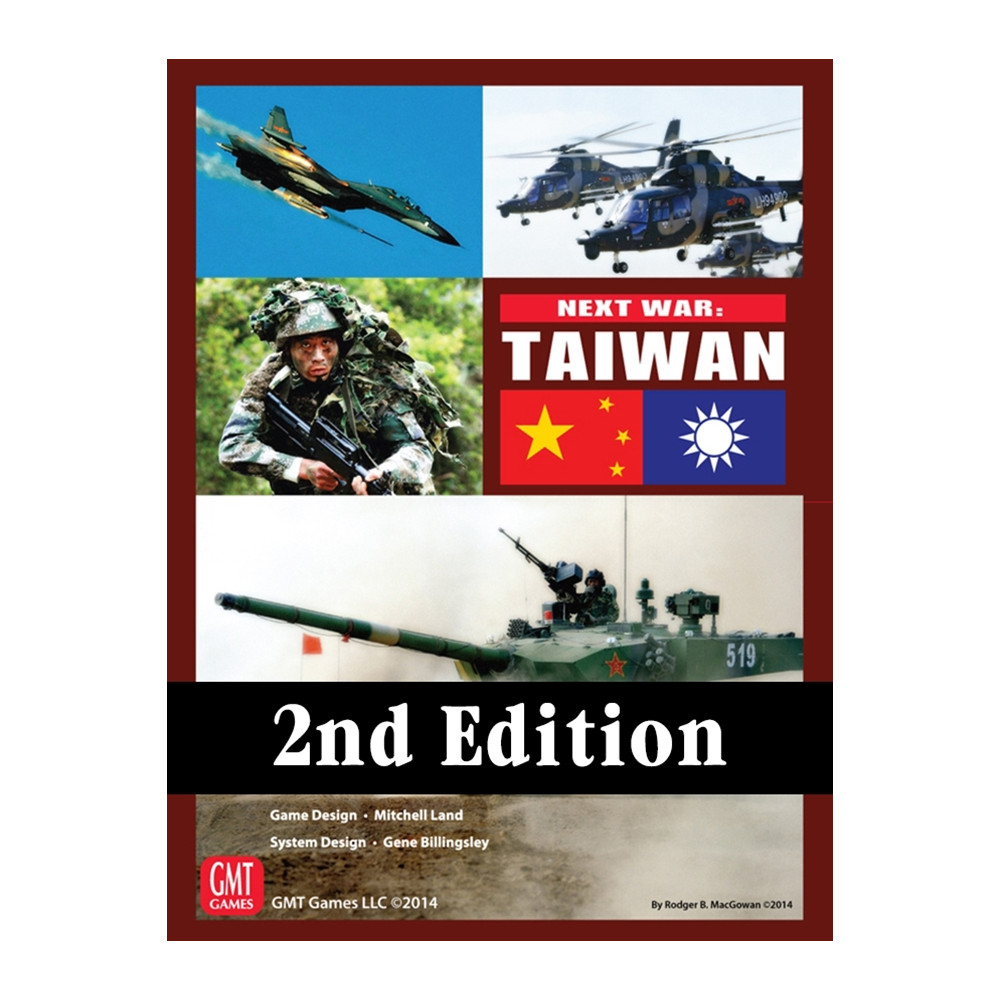 REF: GMT1412Next War: Taiwan, otro volumen de la serie de juegos Next War de GMT y la continuación de Next War: Korea, permite a los jugadores librar una guerra en un futuro próximo en la isla de Taiwán y sus alrededores. En esta secuela, el estado comunista de China, la República Popular China, ha decidido que es hora de terminar con la retórica y las poses y traer de vuelta a la república disidente a la Sociedad Socialista Armoniosa.