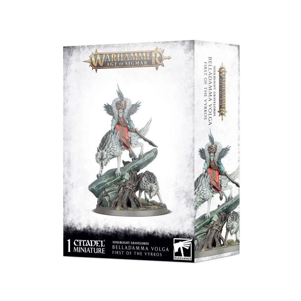 Esta antigua vampira Soulblight es tan letal como se puede llegar a ser. Su cimitarra y sus compañeros lupinos causan una cantidad de bajas temible, pero además, Belladamma también es una hábil practicante de la magia y una maestra de la Maldición Licántropa, transformando a sus presas en Dire Wolves bajo su mando.