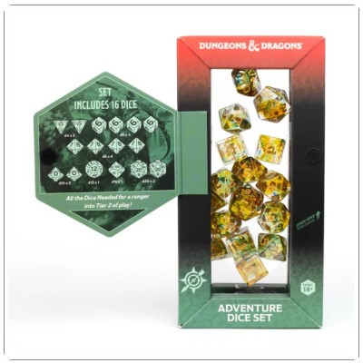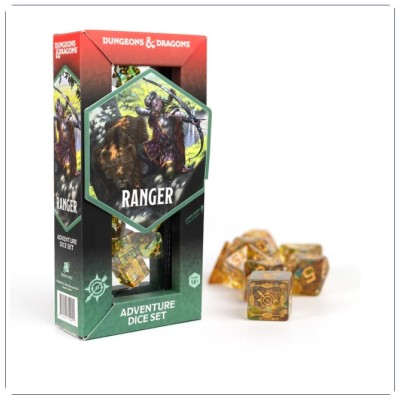 REF: SDZ2002-15Rastrea a tu presa con el set de dados de aventura de Dungeons & Dragons para Rangers, con licencia oficial. Este set verde y multicolor está diseñado para capturar la versatilidad y los agudos instintos del Ranger, con dados perfectos para golpes precisos y para explorar la naturaleza. Ya sea que estés cazando enemigos o liderando a tu grupo por terrenos traicioneros, estos dados agudizarán las habilidades de tu Ranger con cada tirada.