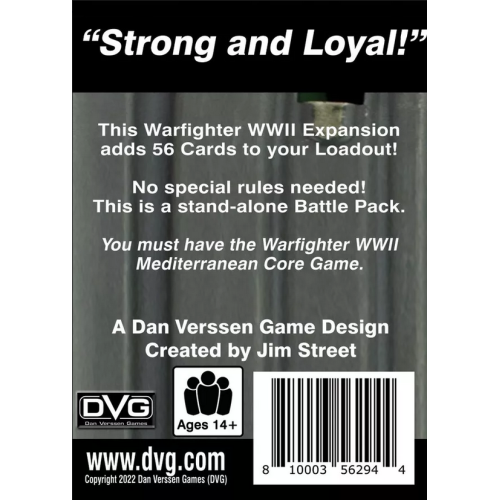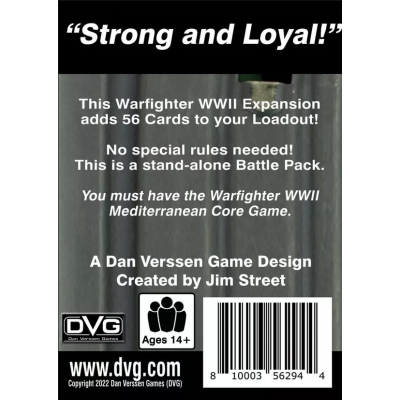 Este paquete de batalla agrega 56 cartas a tu juego Warfighter WWII Mediterranean, incluidas las cartas New Zealander Soldiers, German Hostiles, Missions, Objectives, Locations, Skills and Gear.