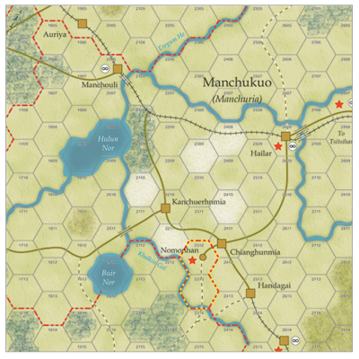 Khalkin-Gol War es un juego de guerra de nivel operativo para dos jugadores que cubre una guerra entre Japón y la Unión Soviética en Mongolia en 1939. La campaña histórica vio una serie de acciones limitadas a finales de la primavera y principios del verano de 1939 a lo largo del río Khalka (Khalkin-Gol) en la frontera entre Manchukuo y Mongolia Exterior. La campaña terminó en una batalla a nivel de cuerpo en agosto de 1939 en la que los soviéticos derrotaron decisivamente a los japoneses y produjeron un alto el fuego entre los dos antagonistas. La suposición del juego es que tanto Tokio como Moscú decidieron convertir esto en una guerra a gran escala.